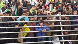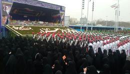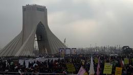 راهپیمایان درحالی که فریادی های مرگ بر آمریکا، مرگ بر اسرائیل و مرگ بر انگلیس سر می دهند با شور و نشاط در حال حرکت به سمت میدان آزادی هستند.