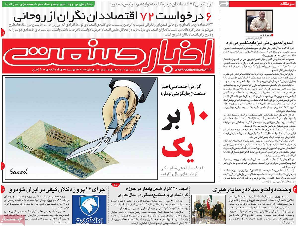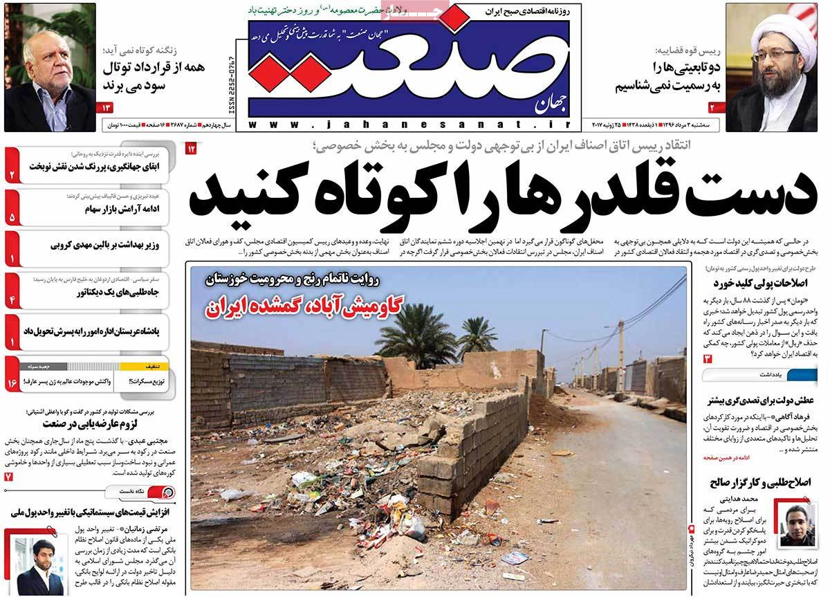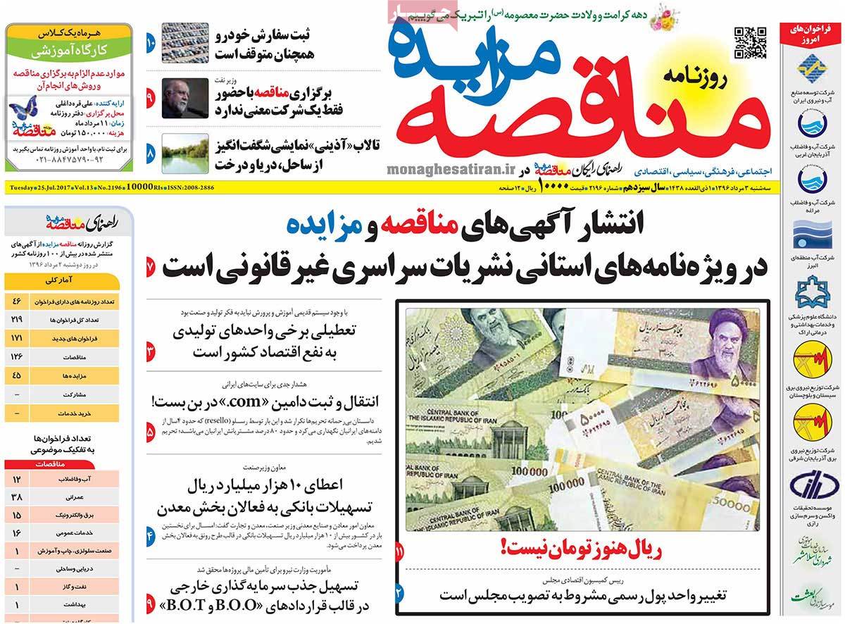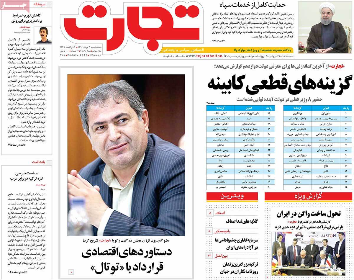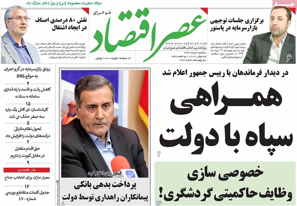 در پیشخوان امروز ، صفحه نخست روزنامه های اقتصادی سه شنبه 3 مرداد 1396 را مشاهده می کنید.