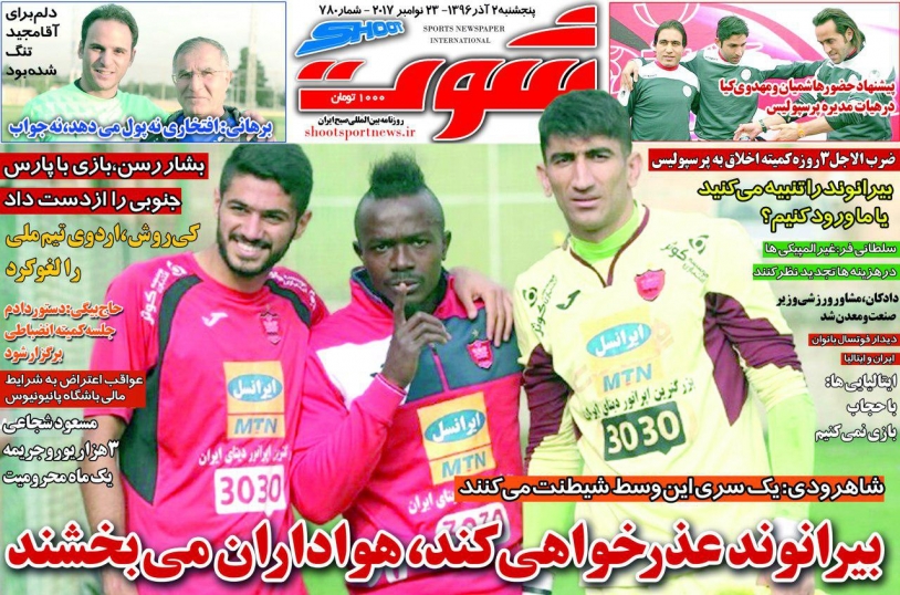 در پیشخوان امروز ، صفحه نخست روزنامه های ورزشی پنجشنبه دوم آذر 1396 را مشاهده می کنید.