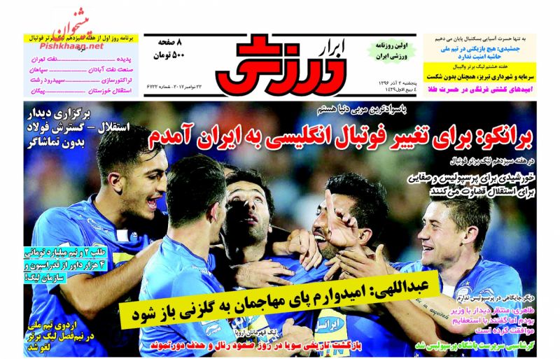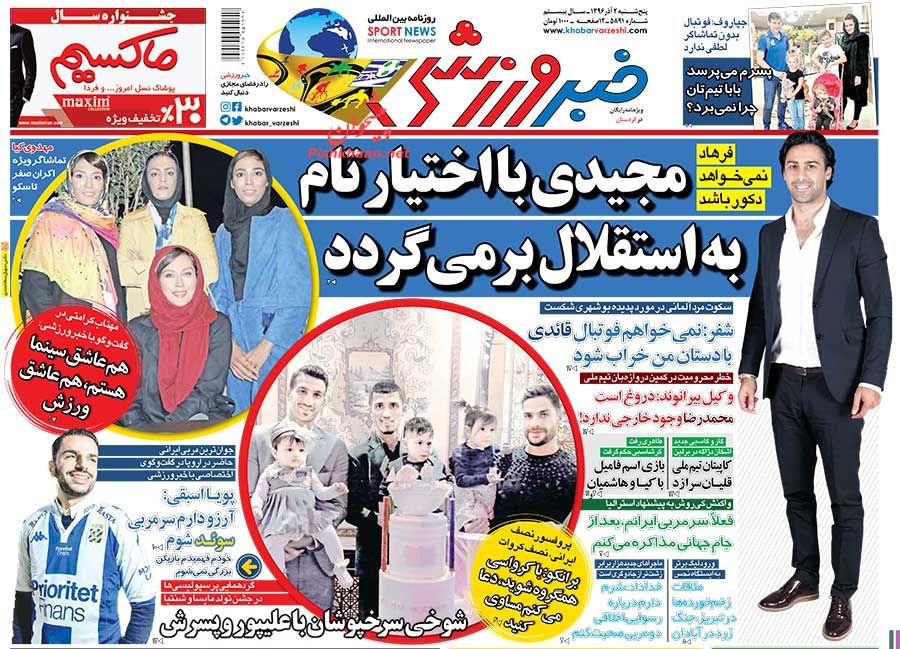 صفحه نخست روزنامه های ورزشی پنجشنبه دوم آذرماه
