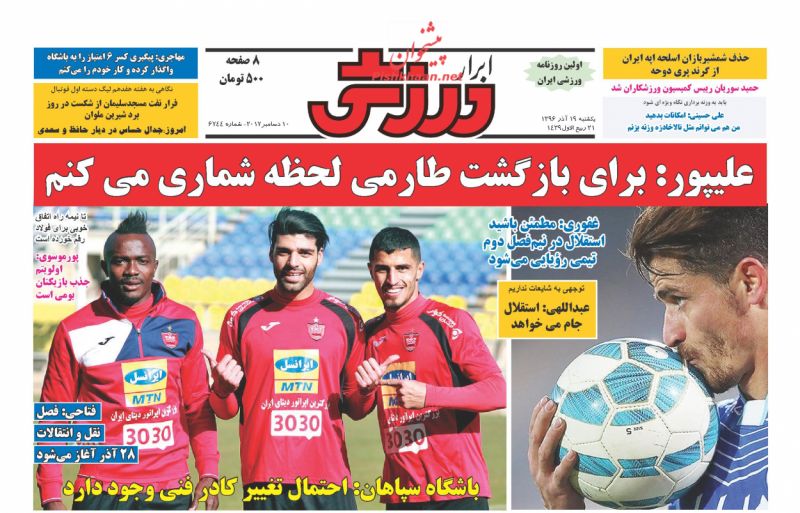صفحه نخست روزنامه های ورزشی یکشنبه 19 آذرماه