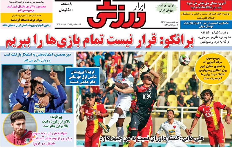 در پیشخوان امروز ، صفحه نخست روزنامه های ورزشی سه شنبه 5 دی ماه 1396 را مشاهده می کنید.