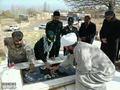غبارروبی گلزار شهدا همزمان با هفته بسیج در شهرهای خراسان رضوی برگزارشد.