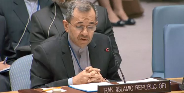 سفیر و نماینده دائم جمهوری اسلامی ایران نزد سازمان ملل متحد در جلسه شورای امنیت تأکید کرد جامعه بینالمللی باید در مقابل باجخواهی و بیقانونی آمریکا مقاومت کند.