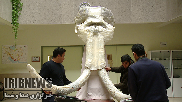 نمونه بازسازی شده جمجمه فسیل 2 میلیون ساله فیل دشت مغان در دانشگاه زنجان رونمایی شد.