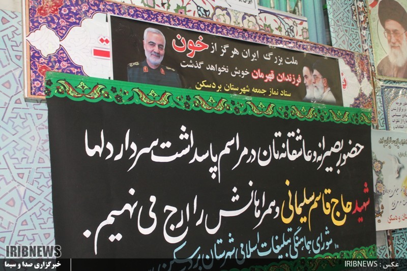 به گزارش خبرگزاری صداوسیما مرکز خراسان رضوی، در این مراسم مردم ولایتمدار در نقاط مختلف شهرستانها با برپایی مراسم راهپیمایی، عزاداری و ختم قران در مساجد و تکایادر غم از دست دادن بزرگ مرد مدافع امنیت کشور سردار دل ها به سوگ نشستند.