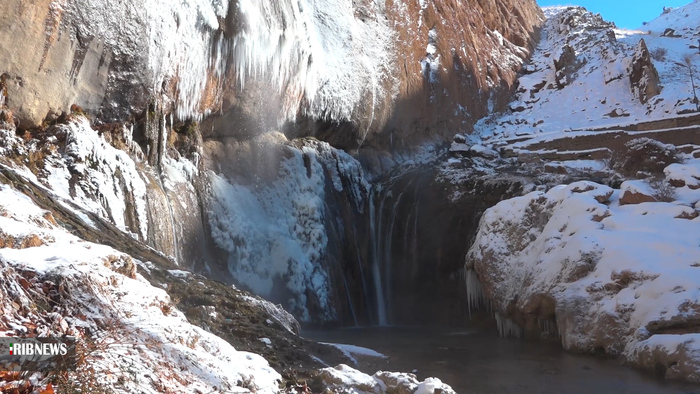 آبشار زیبای سمیرم با ارتفاع 70 متر در فصل زمستان به دلیل سردی هوا یخ زد و زیبایی خاصی را بوجود اورد .