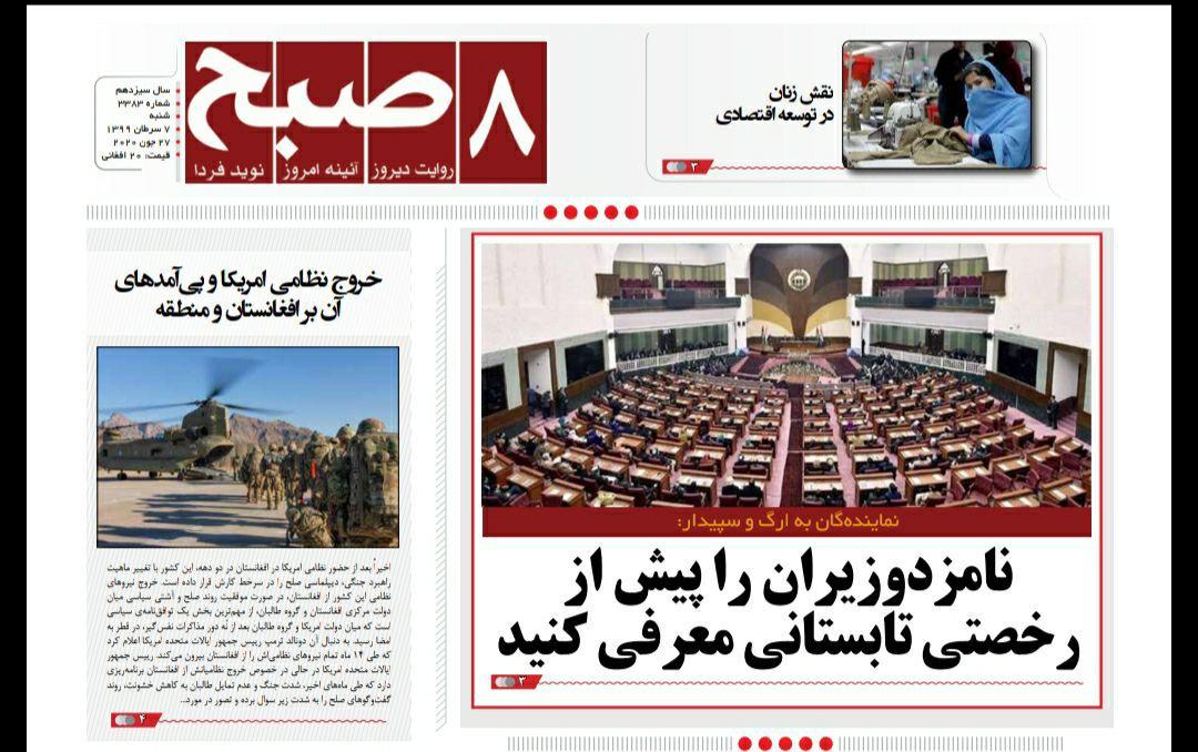 - نمایندگان مجلس افغانستان خطاب به عبدالله عبدالله و اشرف غنی: وزرای کابینه را قبل از تعطیلی تابستانی مجلس معرفی کنید.