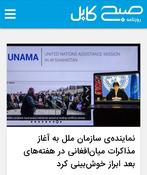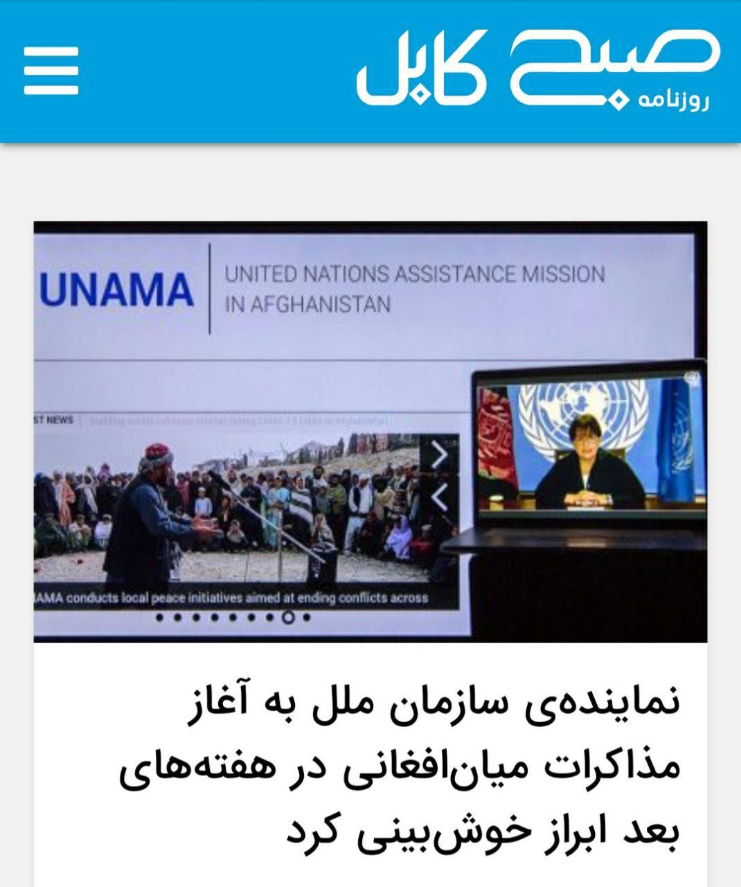 - نماینده ویژه سازمان ملل متحد در افغانستان به آغاز مذاکرات صلح میان افغانها در هفتههای آینده خوش بین است.