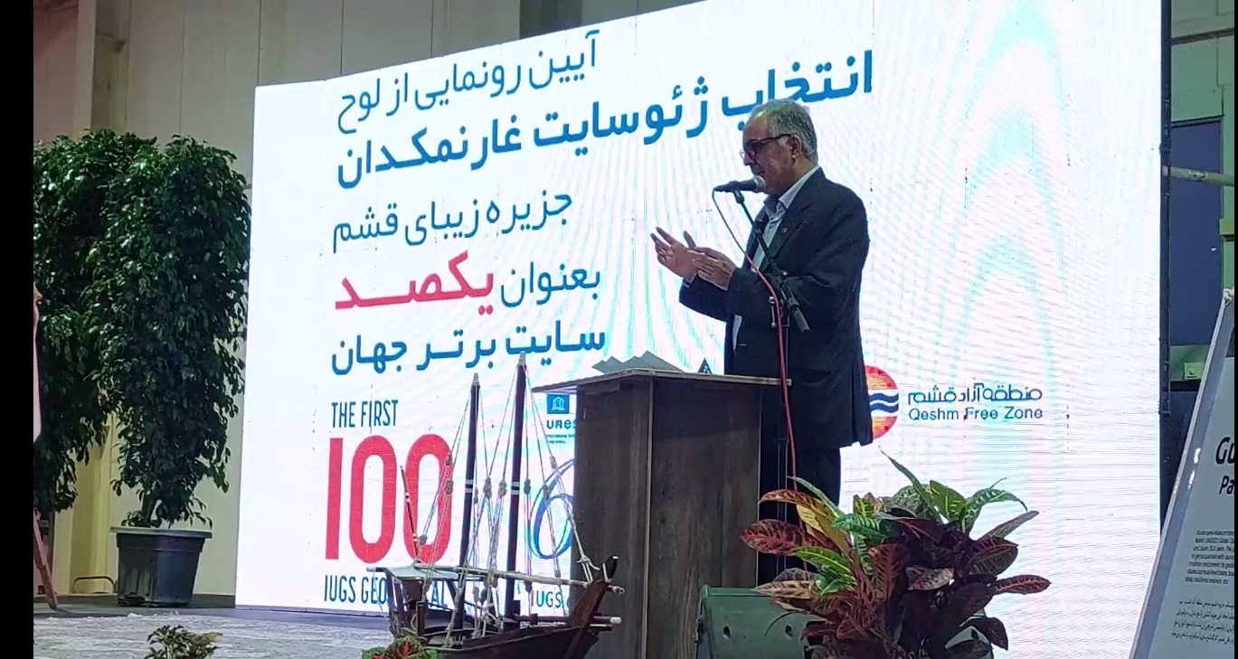 لوح انتخاب ژئوسایت غار نمکدان جزیره قشم به عنوان یکی از ۱۰۰ سایت برتر زمین شناسی جهان رونمایی شد.