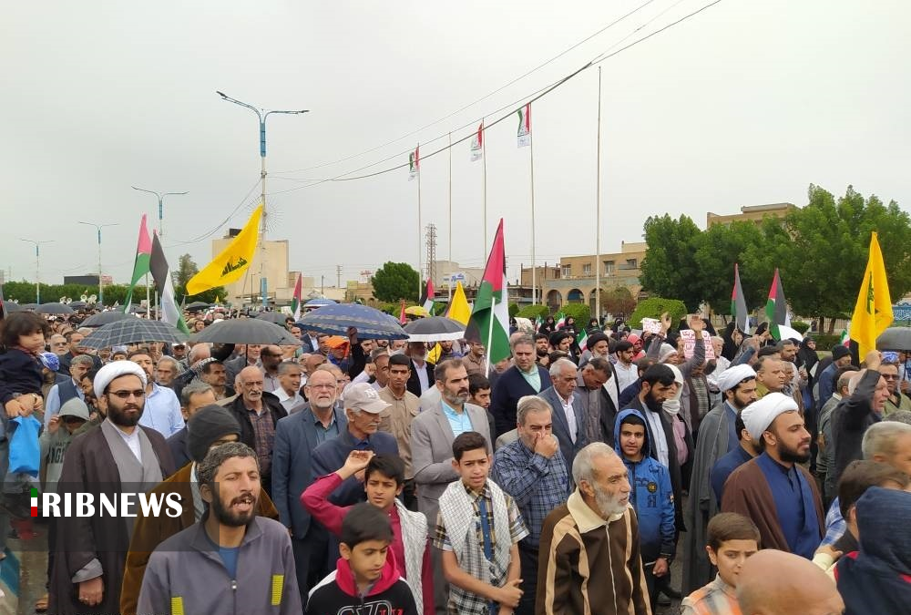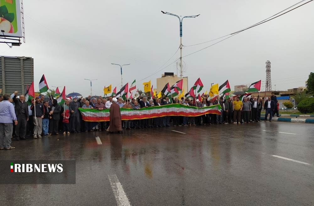 مردم با زبان روزه و زیر باران رحمت الهی حمایت از مردم مظلوم غزه و انزجار و تنفر خود نسبت به نسل کشی رژیم صهیونیستی را اعلام کردند.