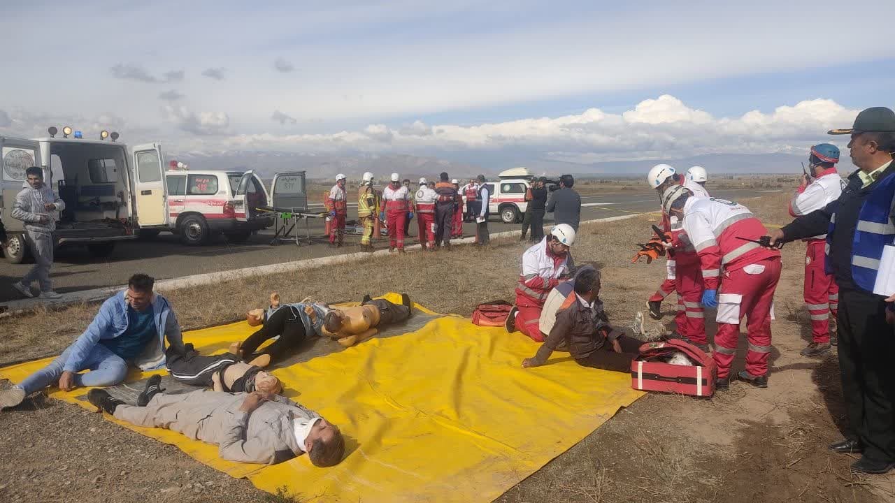 رزمایش شرایط اضطراری با هدف تمرین و ارزیابی توانمندی‌های دستگاه‌های امدادی، نظامی و حفاظتی در سوانح هوایی در فرودگاه شهدای خوی برگزار شد.