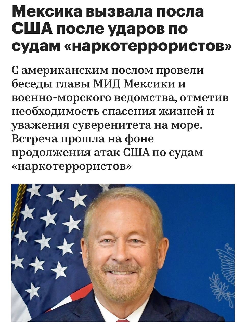 ⁃ مکزیک پس از حملات آمریکا به کشتیهای صیادی ونزوئلا، که با ادعای «مبارزه با مواد مخدر»، انجام میشود، سفیر ایالات متحده را احضار کرد